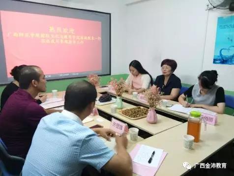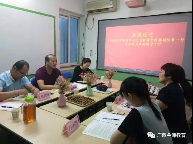 廣西金沛教育國際部團隊與廣西師范學院國際文化與教育學院蔣招鳳副院長(右三)一行合影留念