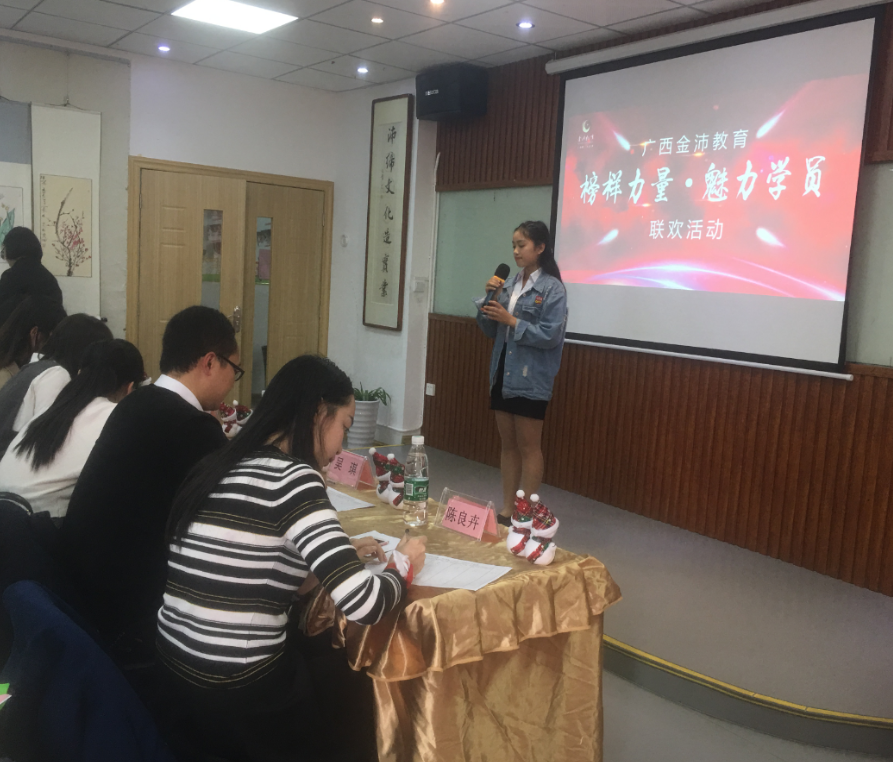 本次活動由廣西金沛教育發展有限公司南湖校區主辦,旨在通過本次的匯報演講,促進學員交流。金沛教育領導及金沛高級教師到現場觀摩了學員的演講,并為獲獎選手頒獎。