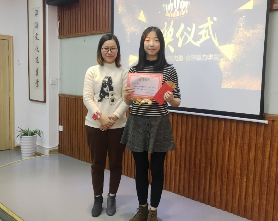 金沛南湖校區張金雪校長為何佳學員頒發三等獎