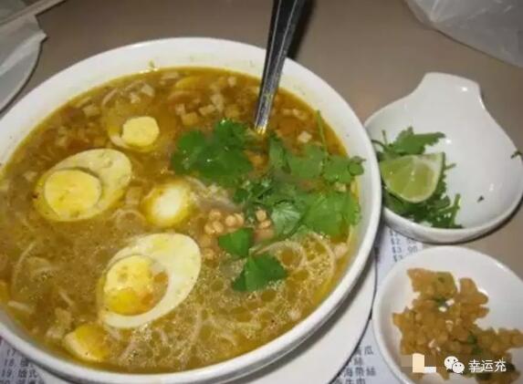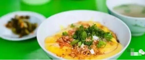這種黏黏的黃色的粥一般伴米粉和腌制的雞肉或豬肉。粥上會淋一點辣椒油,配有腌菜和肉湯。這是一種盡管古怪可是十分招引眼球的組合,可是,如果你是一個熱愛香馥馥的滋味的吃貨,你一定會越來越喜愛它。