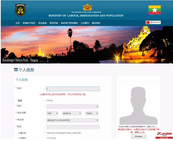 首先是緬甸電子簽證申請網站:https://evisa.moip.gov.mm