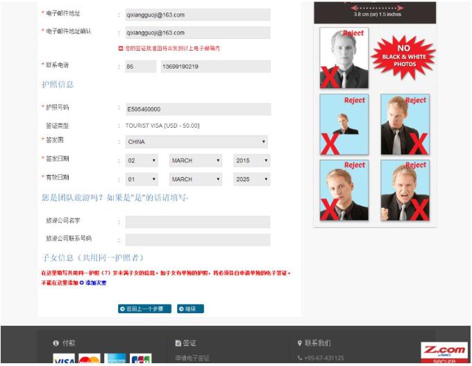 這里要注意一下最后,子女信息;共用同一護照的,孩子在7歲以下的,要填寫上哦;沒有的話就過了;繼續下一步;大于七歲的孩子要單獨申請電子簽證。