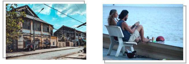 走在貢布市街頭,隨處可見的法式建筑,會使你有一種誤入上世紀法國的時空錯落感,但市場內充滿著的濃濃東南亞氣息,又會將你拉回到了現實當中。貢布曾是法屬殖民地,如今成為了法國人精心修飾過的浪漫度假小鎮。每天圍坐在河邊的酒吧里看著落日吹風,偶爾有些游客要了一瓶啤酒,便在河邊坐上一天。時間在這里仿佛不再流逝,你可以就這樣悠閑地享受貢布小城里慵懶的午后時光。