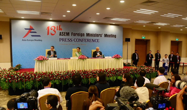 11月21日,杜昂山素季舉行新聞發布會表示:緬甸很榮幸主辦第十三屆亞歐外長會議,本屆亞歐外長會議共有來自亞歐51個成員國,亞歐會議秘書處和歐盟的54個代表團和500多名代表參加了會議。代表團由亞歐外長或高級代表領導。本屆會議之前的11月17日至19日期間,舉辦了90多個雙邊會議。