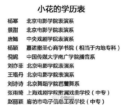 這兩天官宣體很火,馮紹峰的前任團也在熱搜榜上居高不下。有心人把她們的學歷檔案整理了出來,和趙麗穎進行了對比。