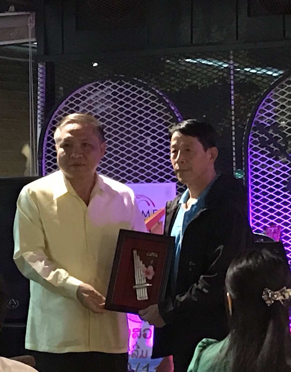 11號晚上老撾國立大學校長宋西·諾潘賽為劉傳書老師、王慶陽老師頒發紀念品,表示對兩位老師的感謝,感謝兩位老師對老撾國立大學的支持與幫助,并希望兩位老師以后能常來國立大學交流訪問。