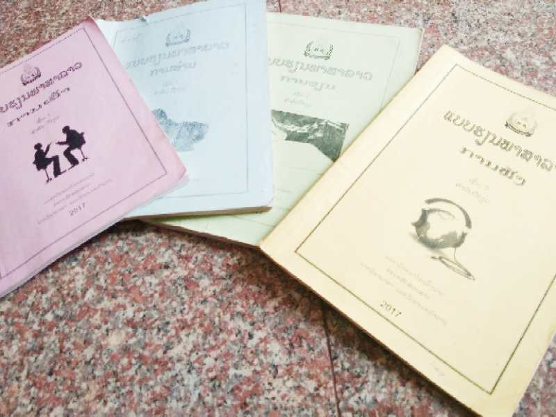 老撾語預(yù)科課程分為聽、說、讀、寫四科,分別由四位老師授課,每科課本分上下冊,各科的上課時間均為一個半小時,對,是連上一個半小時,中間沒有休息時間,跟國內(nèi)每節(jié)課45分鐘中間穿插10分鐘休息時間的模式還是有點差別的,不過授課時間跟國內(nèi)是一樣的,周一至周五。