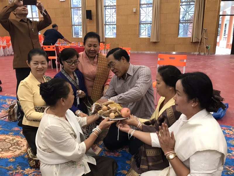 2019年5月13號凌晨五點,老撾國立大學孔子學院新樓成功舉辦栓線祝福儀式,老撾國立大學校長宋西.諾潘塞、副校長宏頻.占塔翁、辦公室主任瑪妮淑和老撾國立大學孔子學院老方院長阮瑋蕾.賽雅勒、中方院長李肖以及中國志愿者老師等參加此次活動。