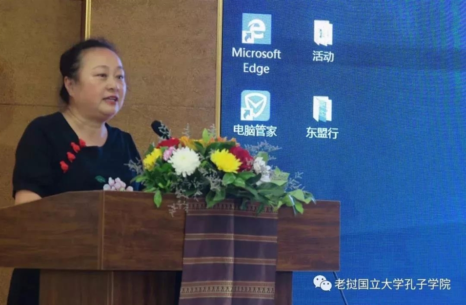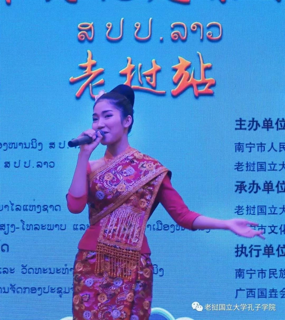 老撾國立大學(xué)孔子學(xué)院老方院長阮瑋蕾致歡迎辭。她表示老中是全面戰(zhàn)略合作伙伴關(guān)系,是人類命運(yùn)共同體,老撾和廣西經(jīng)濟(jì)文化交流非常密切,壯族文化與老撾民族文化相似相通,感覺就好像一家人一樣。她說“我們要構(gòu)建長效合作機(jī)制,共同推動老中兩國人民之間的友好往來與合作,推動中老民間傳統(tǒng)文化藝術(shù)的廣泛交流,共同提升文化交流的品質(zhì)。”