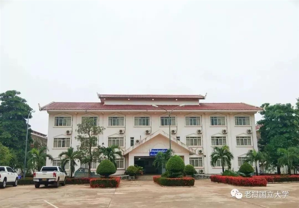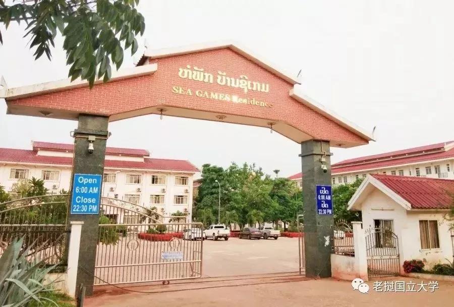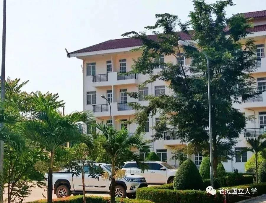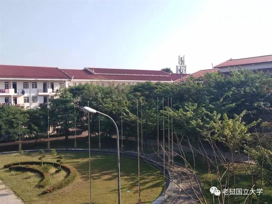 老撾國立大學校園面積很大,富有東南亞特色的熱帶植被,也保留了很多原始花木,宿舍大門有沒有一種要穿越時空隧道的感覺,高大的樹木遮蔽著宿舍樓,樓下環境優美自然,很適合學習交流