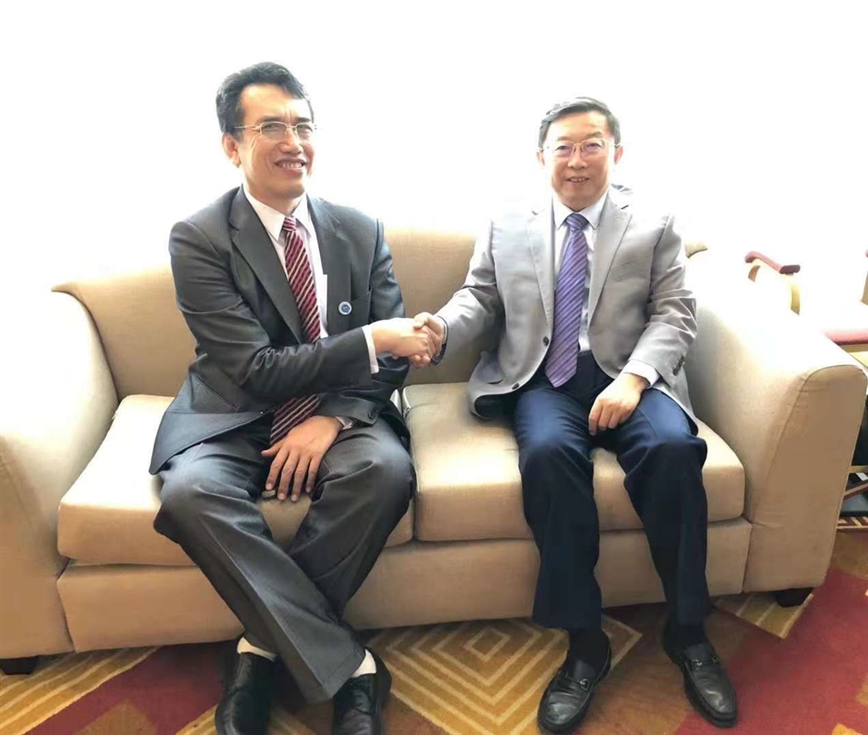 2018年9月,中國—東盟商務理事會執行理事長許寧寧與老撾科技部副部長交談。