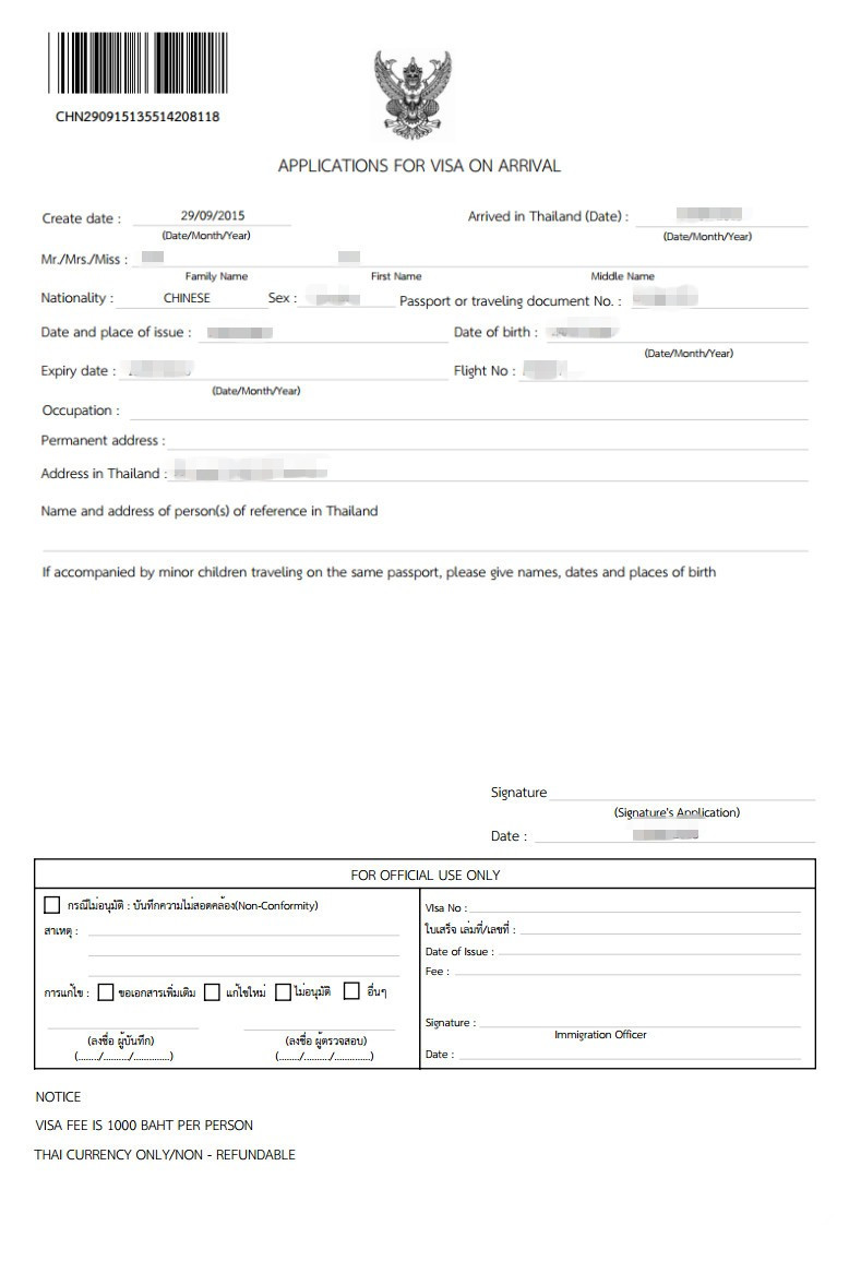 游客只需在填寫完成后將此在線表格打印出來,連同相關(guān)落地簽基本文件一同在泰國各國際機(jī)場落地簽柜臺辦理手續(xù)即可入境。